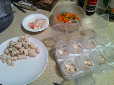 Mummy’s pretty good at estimating the portions and managed to pack the portions neatly into the little containers.