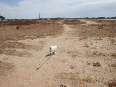 Yes, this is the BEST place on earth. This is Fiesta Island, San Diego, where dogs run free, unleashed. This lovely peninsular island is just beyond amazing. Not only is there plenty of land for me to roam, the water is calm and there’s no nasty waves that might scare the hell out of me. Period.