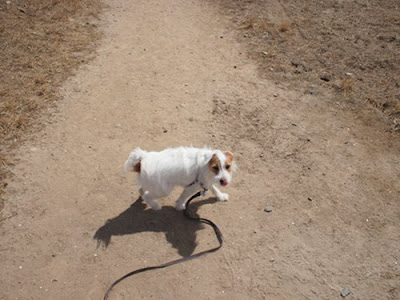 In Sam’s world, fetch does not equate to bringing the ball back to the thrower. Fetch means I get the ball and finder’s keepers. Everytime I grabbed the ball, I would run into water and wet my little paws. Poor Daddy had to chase after me, before stepping on my ‘tail’ (the tagging leash) and snatching the ball out of my little jaws! And the process repeats itself. (I get an extra kick when daddy starts cussing me for making him go through all the hassle. wheee~)