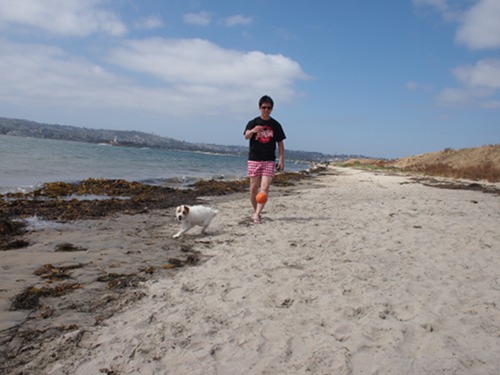 Yes, this is the BEST place on earth. This is Fiesta Island, San Diego, where dogs run free, unleashed. This lovely peninsular island is just beyond amazing. Not only is there plenty of land for me to roam, the water is calm and there’s no nasty waves that might scare the hell out of me. Period.