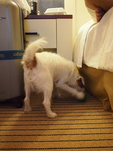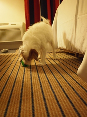 And the fun begins. This was actually a little more challenging than the kong toy I already have. I love the texture of the toy and how it rolls around spilling treats. Of course, mummy had a heck of a time laughing at me chasing after the rolling ball around the carpet.