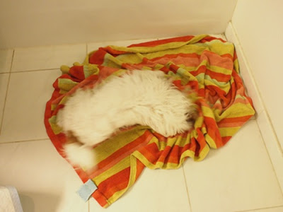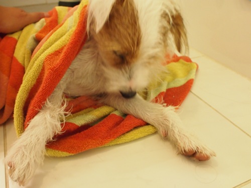 1. It begins with a quick attempt to dry me slightly using a microfiber towel, which was a gift for me from one of mummy’s house guest. While it’s a pretty small towel, it is pretty effective in drying my head, neck and butt area.