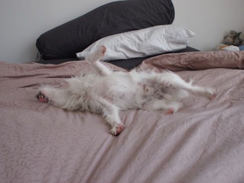 4. Once mummy opens bathroom door, I would proceed to dry myself even more on my parents’ beds. Rolling around the duvet has proven to be one of the best way to dry my coat.
