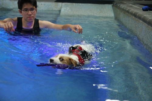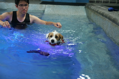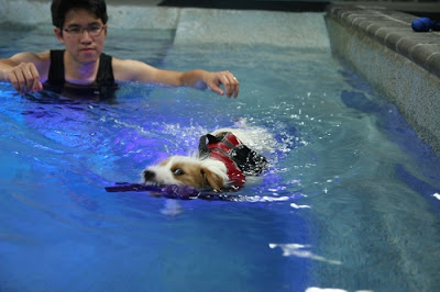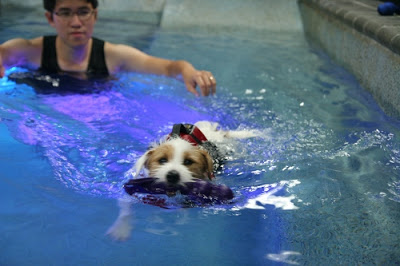 Mummy found an indoor swimming pool just for dogs. The place is called Water4Dogs and provides social/open swims (for up to 6 dogs), rehabilitation sessions, exercise sessions and even fun sessions (private for just 1 dog). In addition, unlike human swimming pools where the water is treated with chlorine, the pool is treated with UV to kill the germs, making it safer for the dogs.