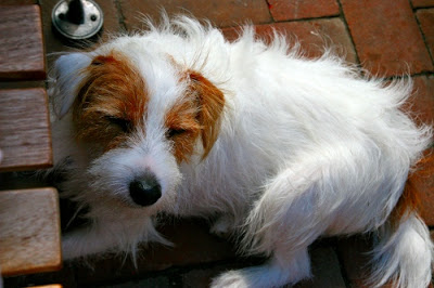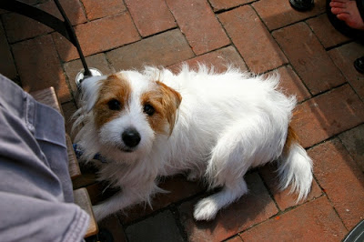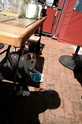 When we finally got seated, I was exhausted and happily made myself comfortable in the shade under the table.