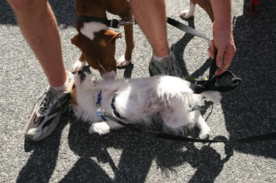 Hee, I’m generally a submissive dog and would roll over for most dogs. The owner of the other dog was so impressed with me that he commented that I was a really good dog and that the world needs more dogs like me! *GRINZ*