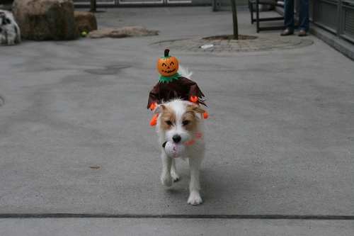 Oh, the walk ended on an even more awesome note when I got a treat from another dog owner who thought I was trick or treating!