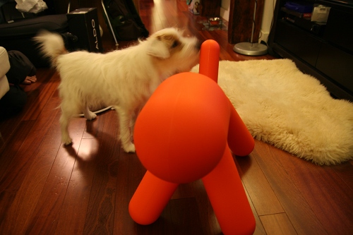 Well, mummy always wanted a second dog. But due to some reasons, we couldn’t. (PHEW~) So, she decided to satisfy her own desires by getting a puppy by Eero Aarnio for Magis. She decided to name her Inu (which means Dog in Japanese) since she’s learning Japanese. How creative. -_-