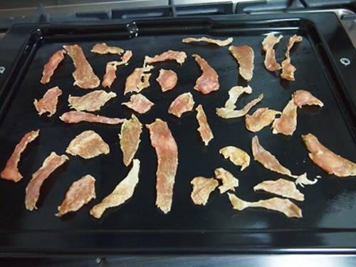 To ensure that all bacteria had been destroyed and to prolong the shelf life of the jerky, mummy placed them in the oven (at the lowest temperature) for ten minutes.