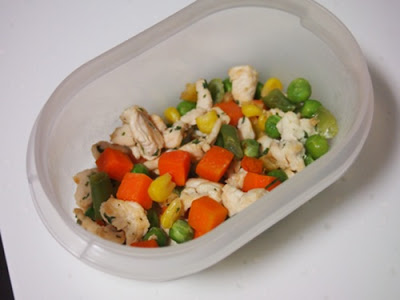 At least dinner was awesome! Mummy rewarded my patience with a home cooked chicken meal using the leftover meat and some frozen vegetables.