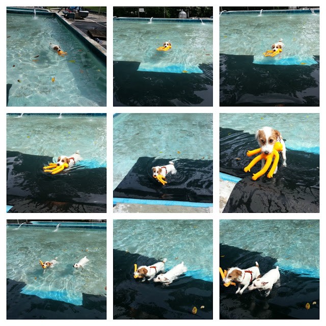 I was too obsessed with my monkey to be too bothered with other dogs, even when another Jack Russell decided to join me on my swim. (I was more concerned she was eyeing on my monkey, but it turned out that she just enjoyed swimming beside other dogs.)