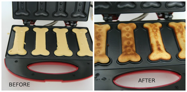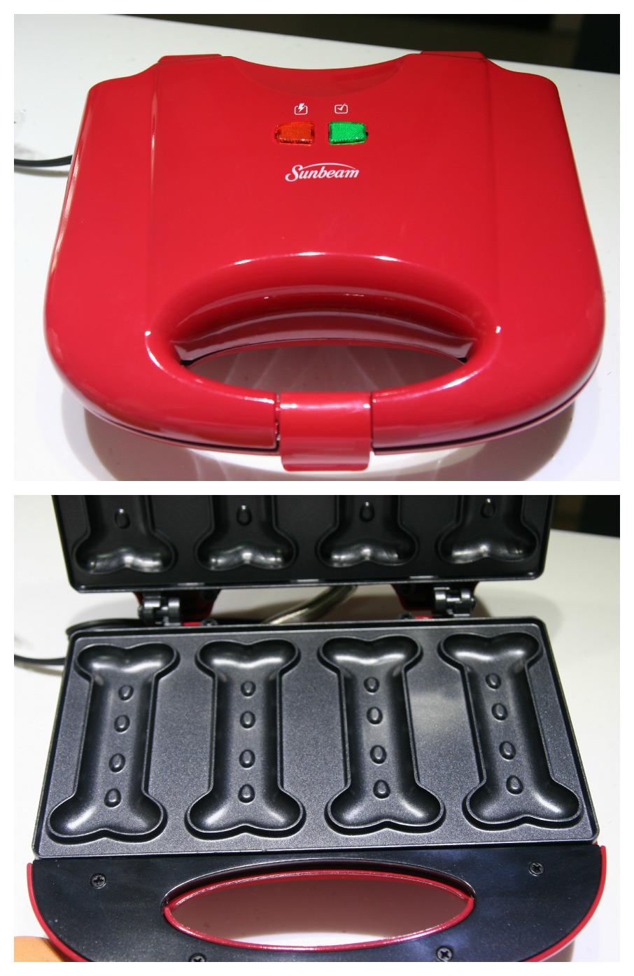 The dog treat maker looks just like a wafer maker, except that the casing is the shape of dog biscuits!