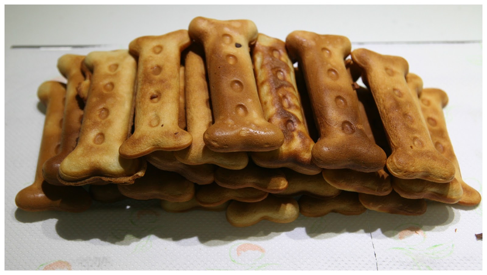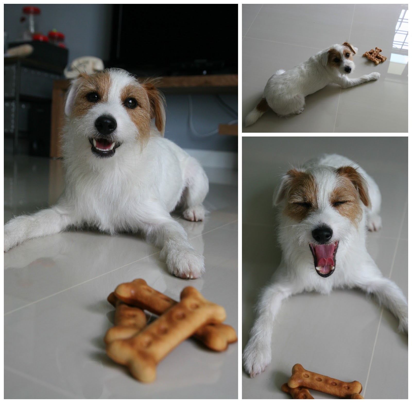 Unlike the store bought biscuits which are dry and hard, the home made dog biscuits were more like cakes and were soft and moist. (Which I kinda prefer actually)
