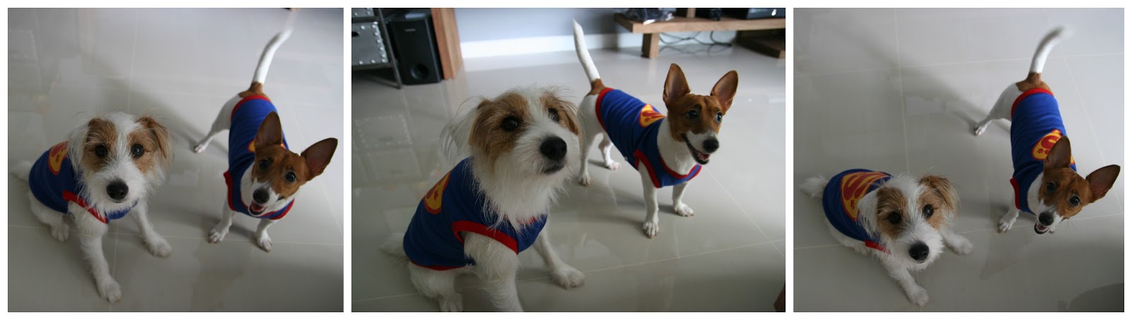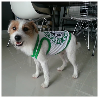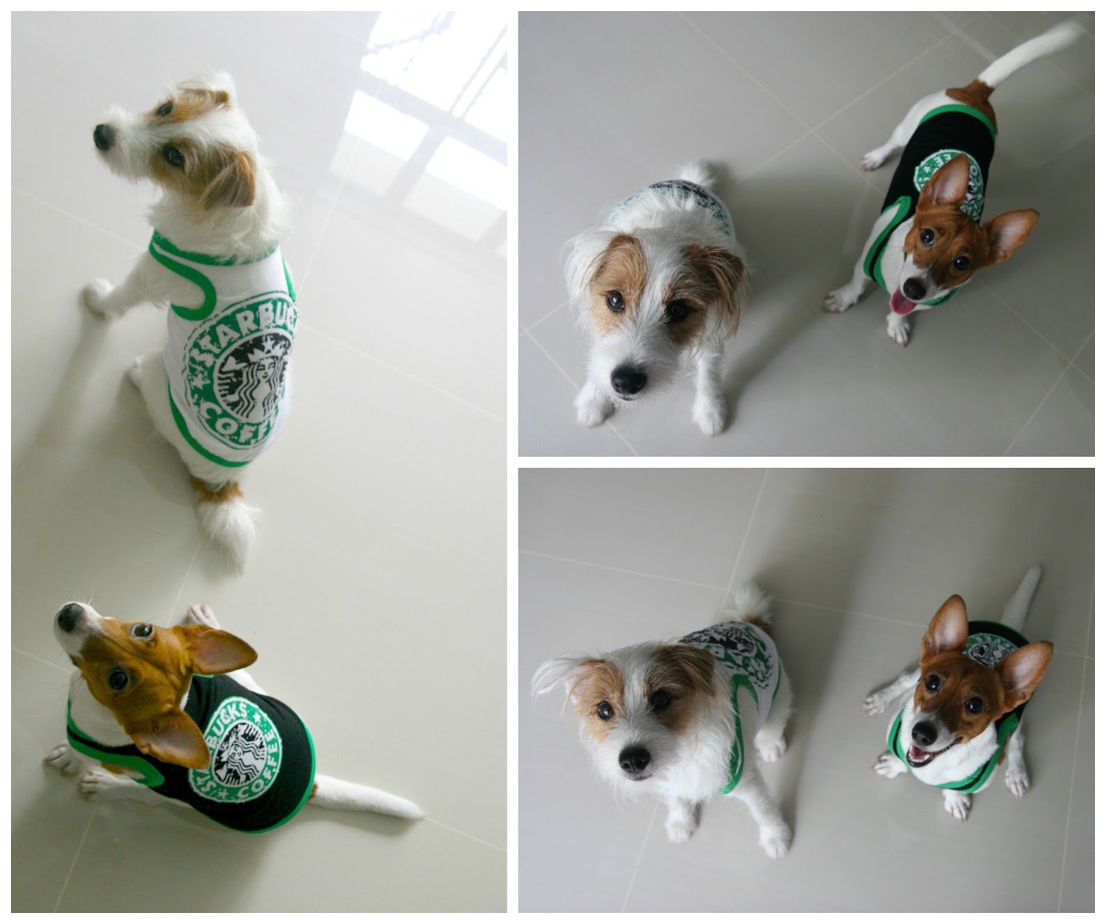 To thank Mummy for dog sitting, Peachy’s very sweet mummy bought us some gifts (toys, leash, harness etc). Mummy’s favorite of the lot was none other than… the couple tees. -_-