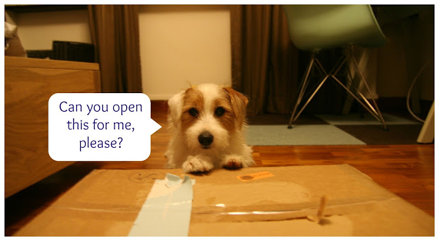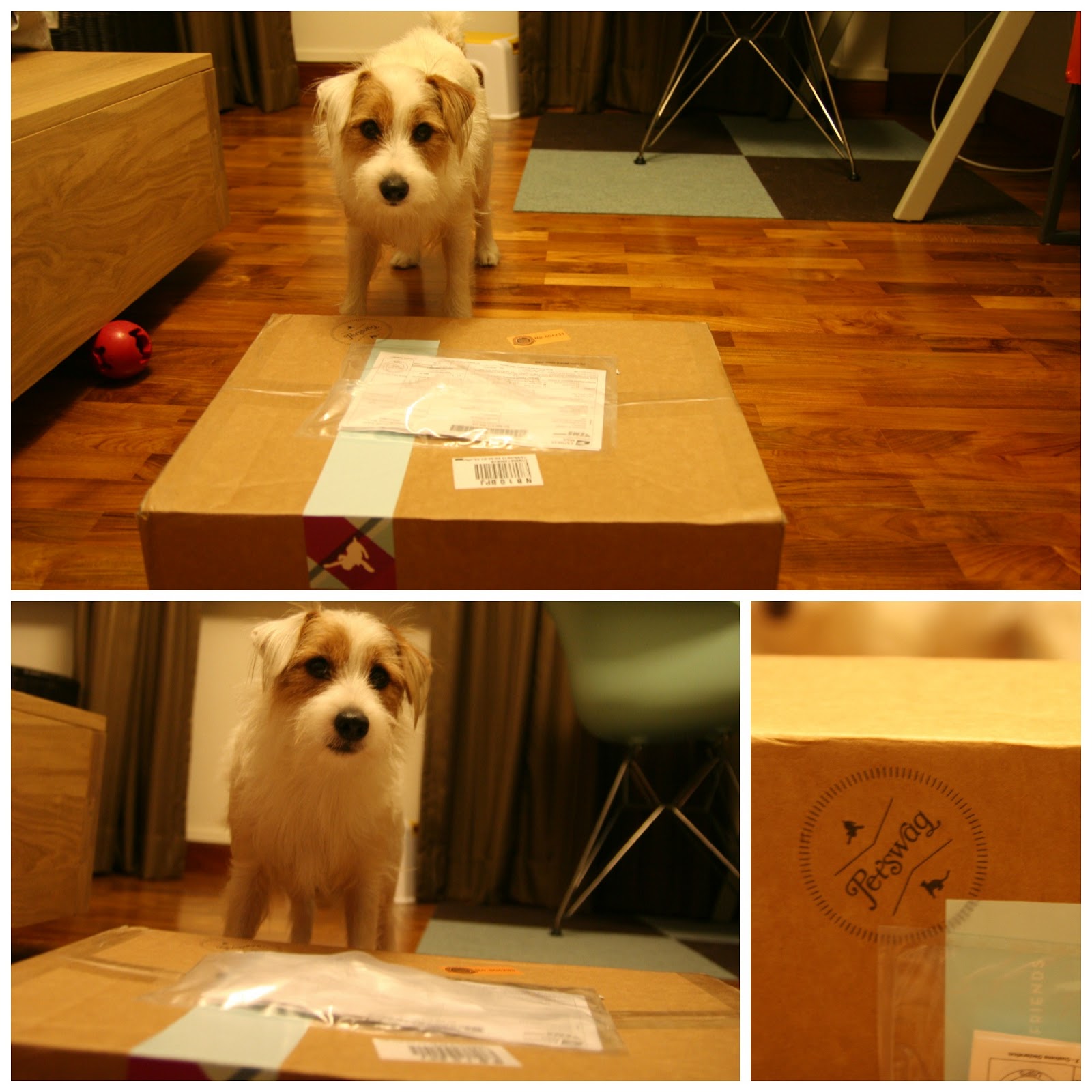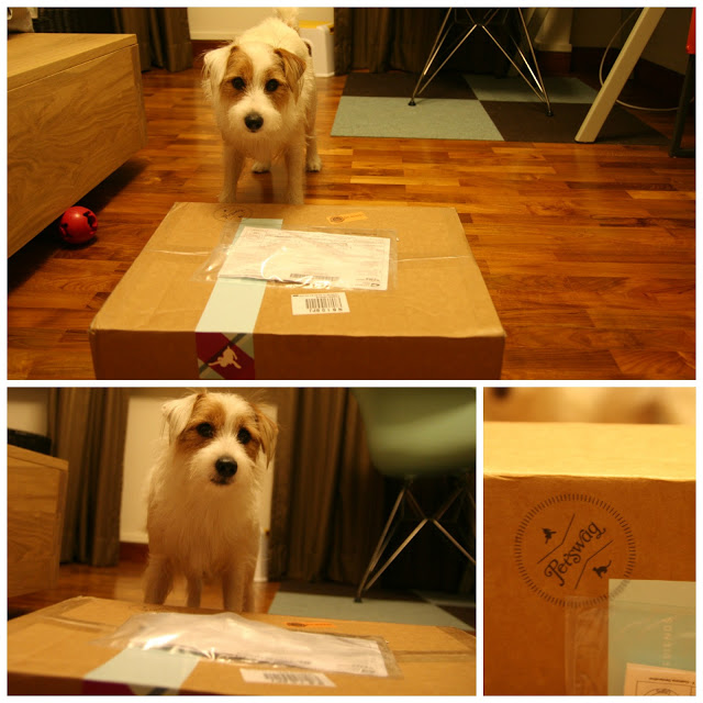 A parcel from Petswag came for Mummy today. I was jumping in joy as I knew that the contents were for me! However, my stupid parents decided to take their own sweet time in unveiling the package. They had dinner, took me for a walk, had their showers, did the laundry BEFORE it was finally time for the opening ceremony.
