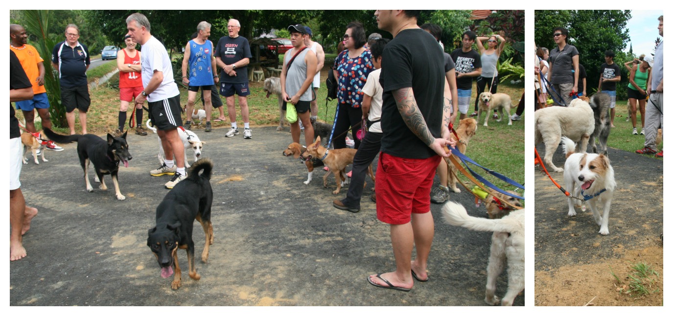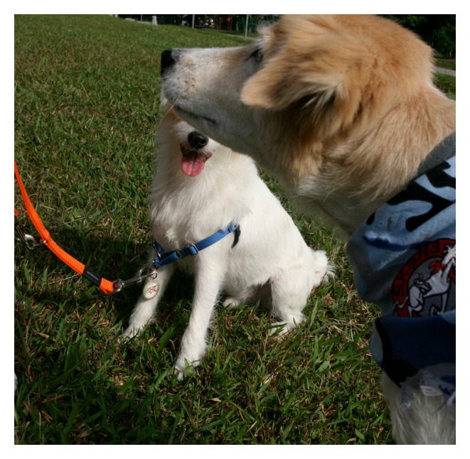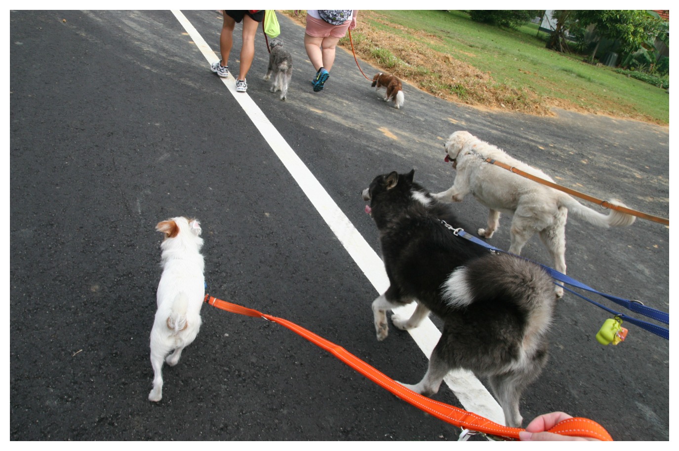 Mummy’s mentor at work, Uncle Bryan, mentioned about a group of hash enthusiasts who organizes monthly hashes at different parts of Singapore. There will be a pre-laid trail that is set by one or two volunteers (aka Hares) who have recced and marked out the route prior to the actual hash. What’s unique about this group of hashers is that it is canine-friendly, hence the name “Dash“! This awesome group welcomes dog lovers and their pets to join them on the first saturday of the month (rain or shine). Each route will last no more than an hour and is suitable for participants of all fitness level. Oh, and to celebrate the completion of each hash, there will be booze (*wriggly dance*), drinks and food at the end point! Dang, that’s life!