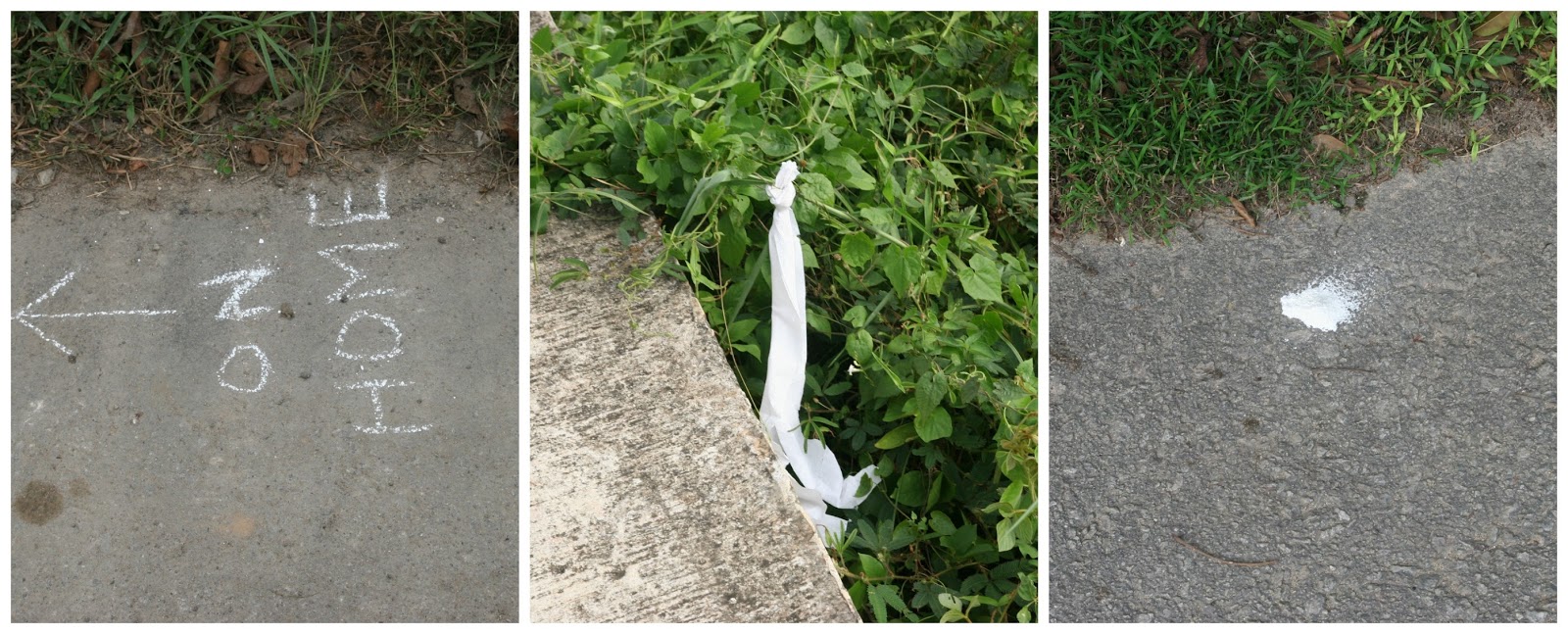 While we were able to follow the crowd in front mindlessly, we got left behind eventually. That was when we realized the importance of the signs the hares used to mark the route. A quick way to remember is by the acronym “CPF” – Chalk, Paper and Flour. There will be either one of these three items placed every 50 metres to help trace the trail. Interesting isn’t it?
