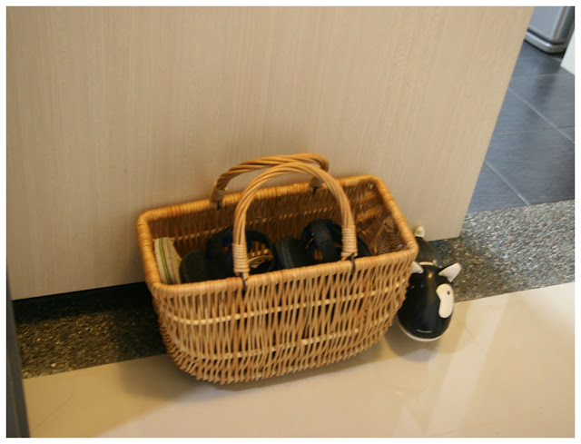 Once she did that, she revealed the real purpose of the basket – to store the stray slippers by the door!