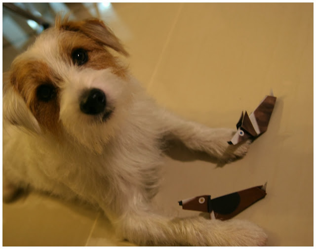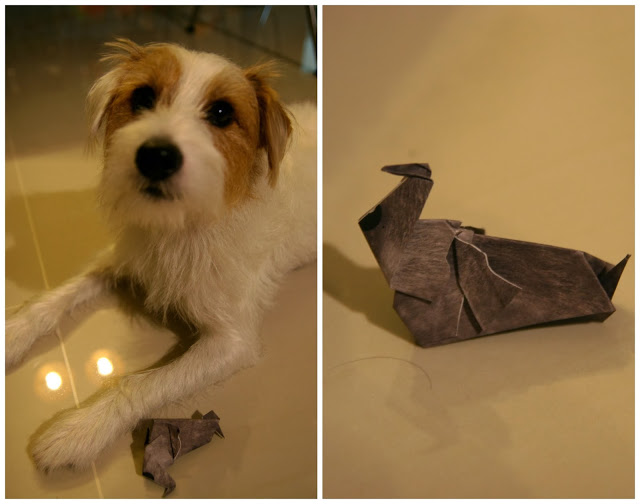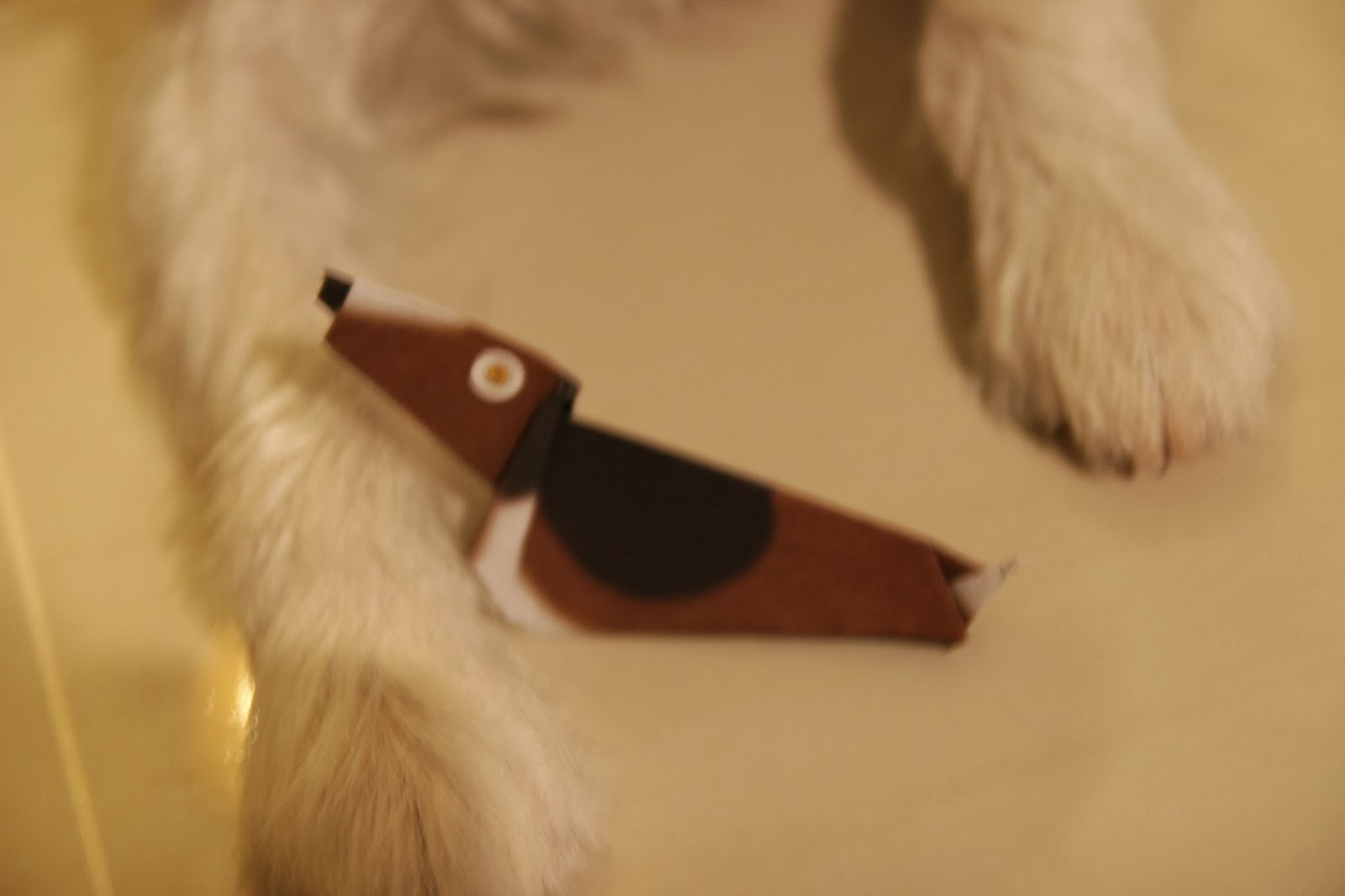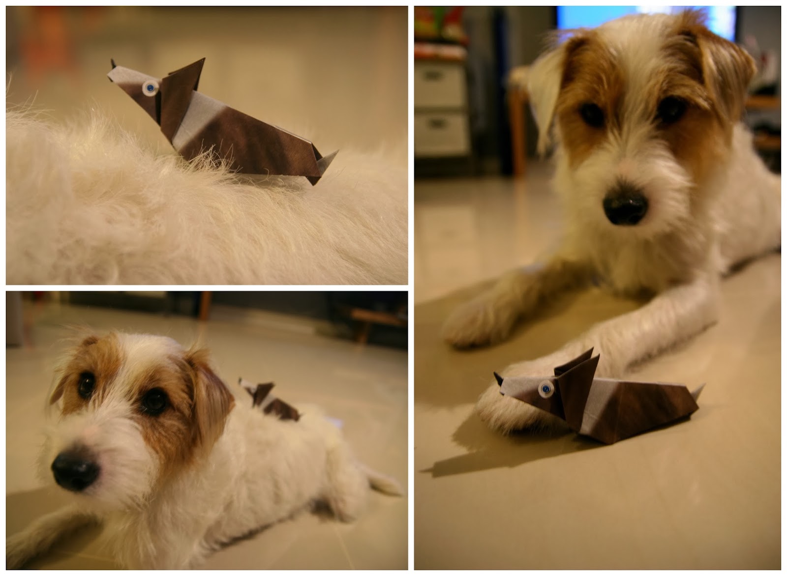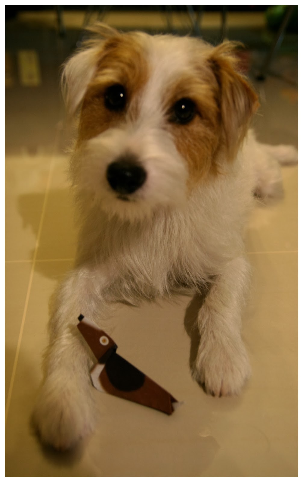 After some try and error, we completed my first origami pet – Bully, the brindle Bull Terrier!