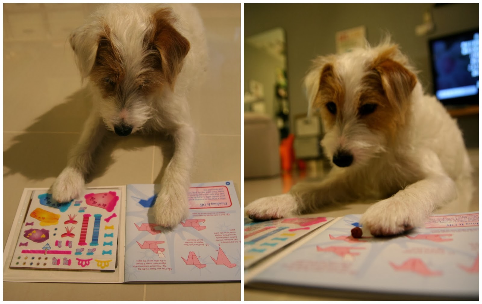 It even provides readers with pattern paper to fold specific dog breeds. There is also a sheet of stickers for you to customise your canines. Hee, you can choose eye colours for them!