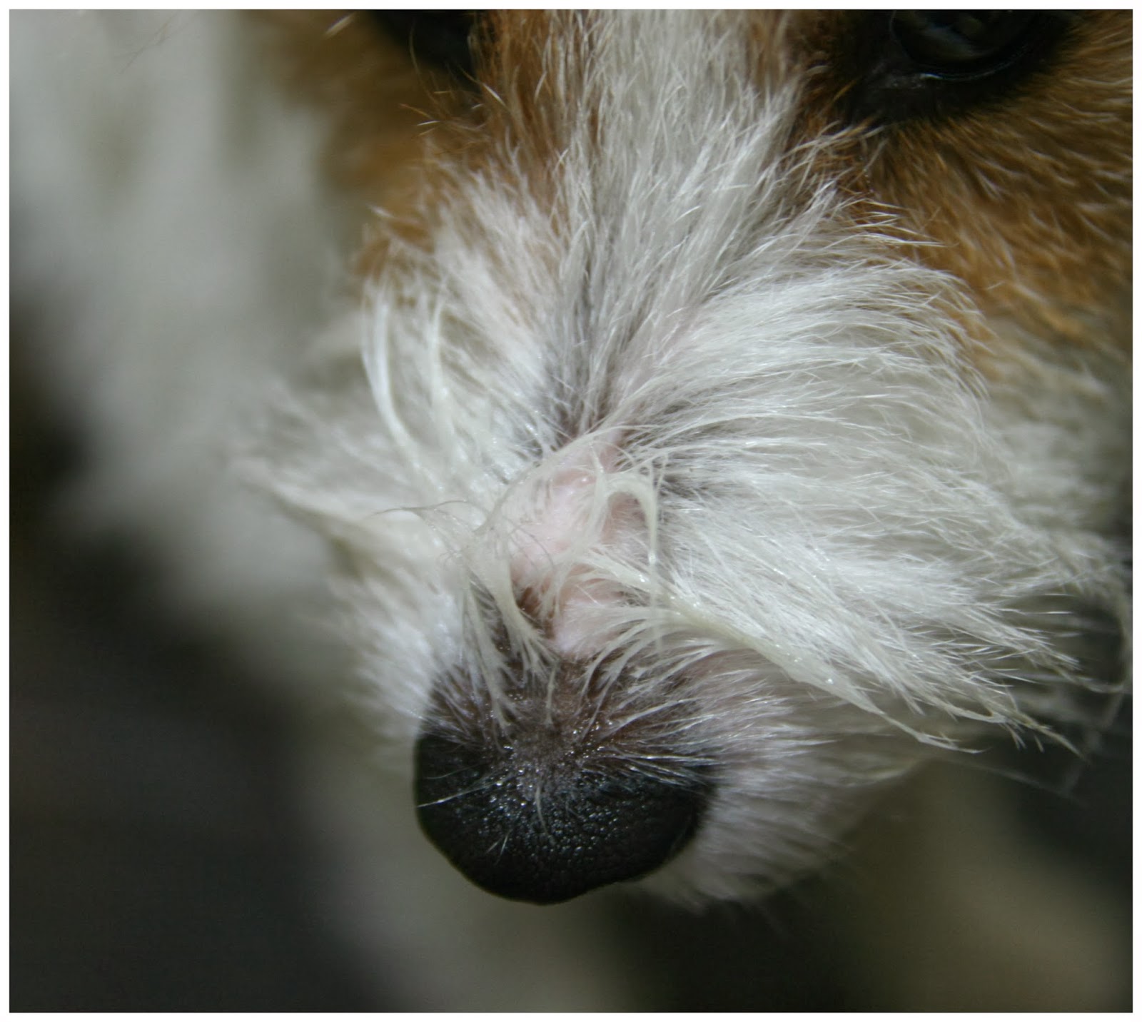 See the pinkish spot above my nose? As cute as it is, it’s actually a bald patch.