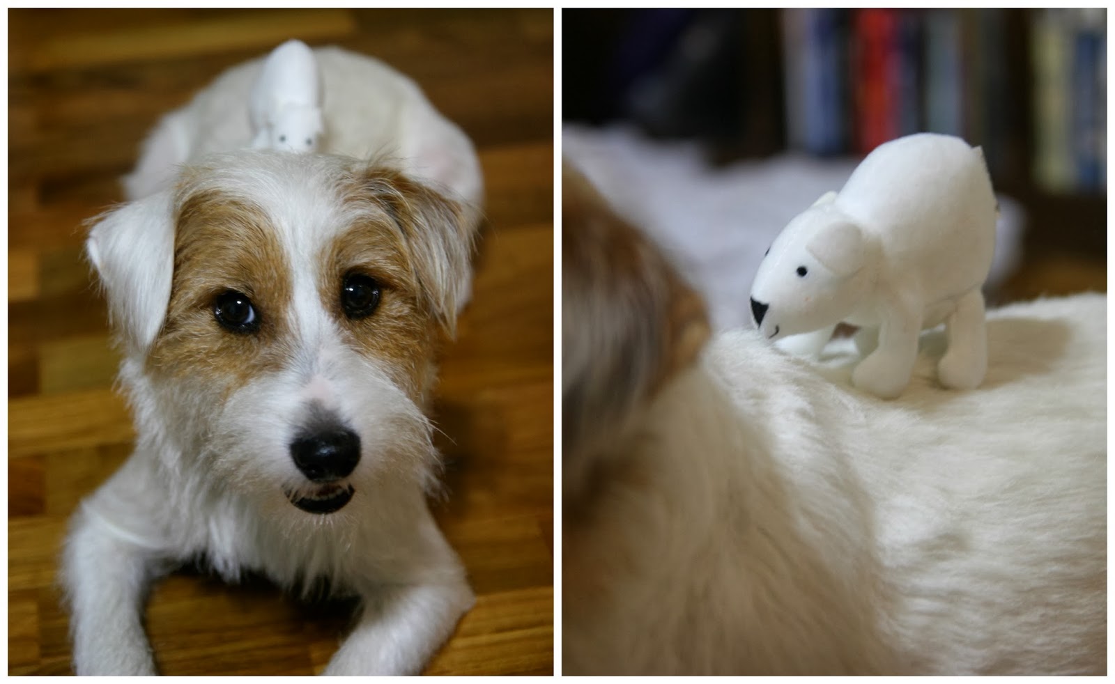 Hee, this silly bear thinks that my off-white coat is snow!