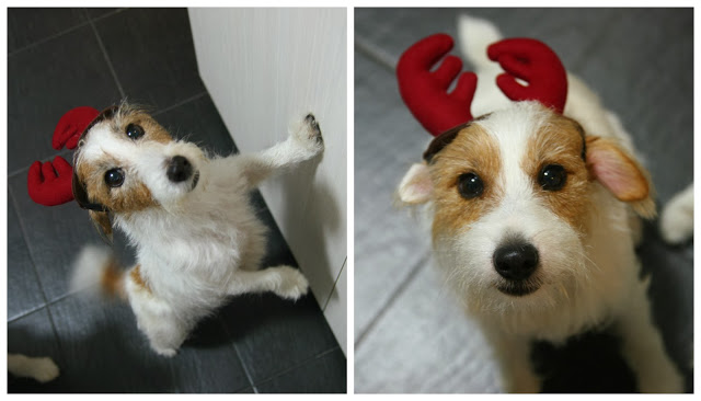 Mummy whipped out the old reindeer ears we have (we bought it from Macys) to get us ready for some festive photo taking.