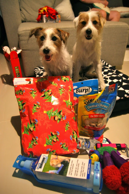 Thank you Rusty’s mommy and (human) sisters (x4), especially Cousin Erin for spending her own pocket money to buy us even more treats! *Muackz*