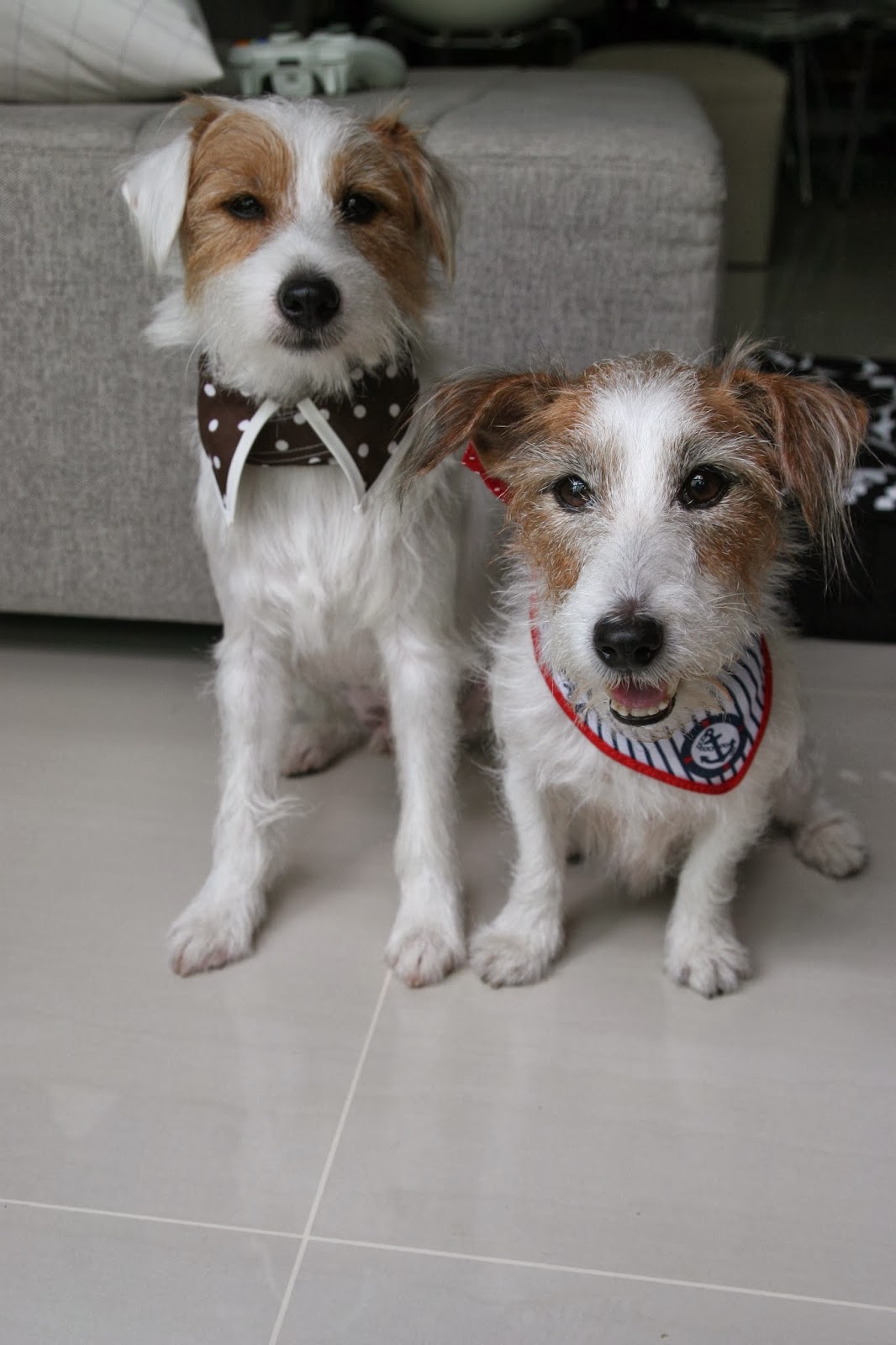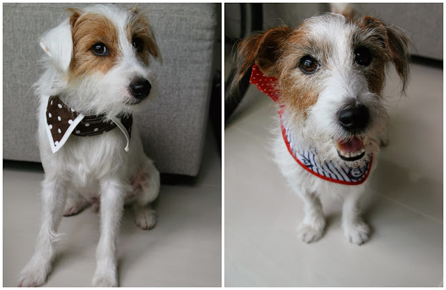 While Mummy was flipping through my stash of dog clothes, she found us lovely neckwear pieces to model.