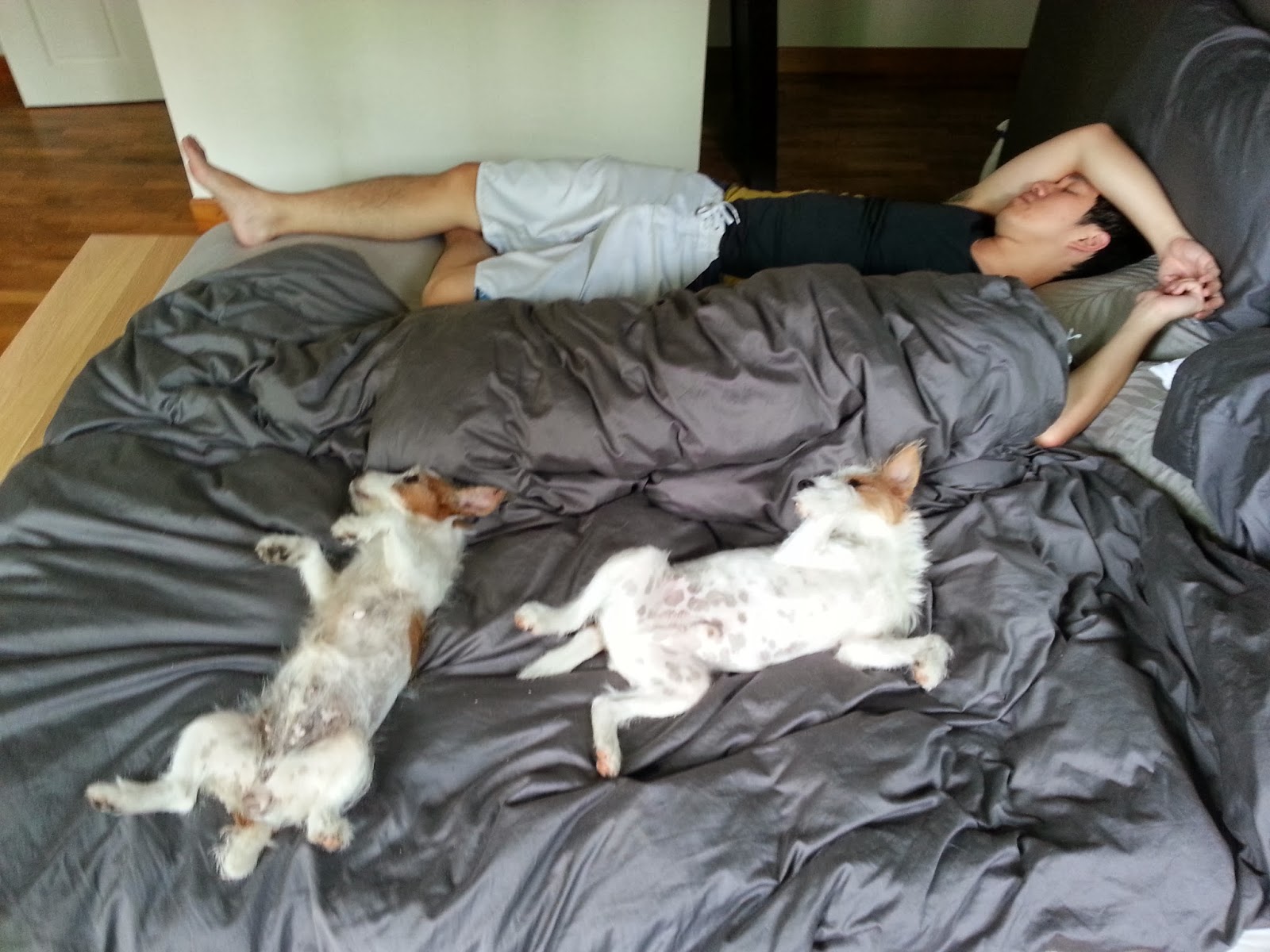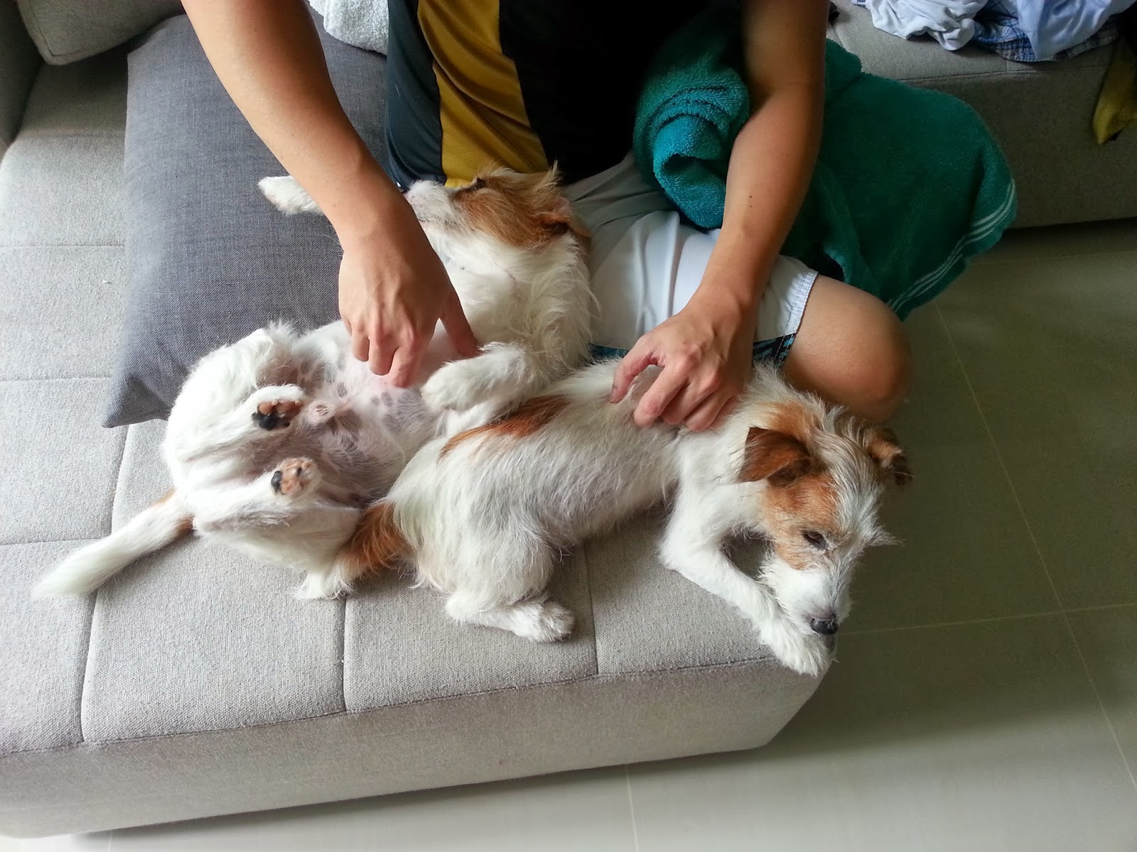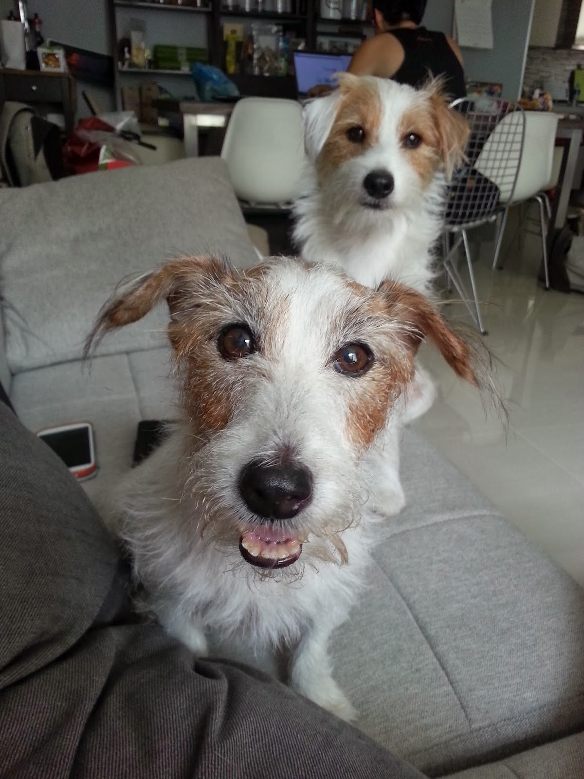 We put on our best begging face while Mummy enjoys her TV lunch.