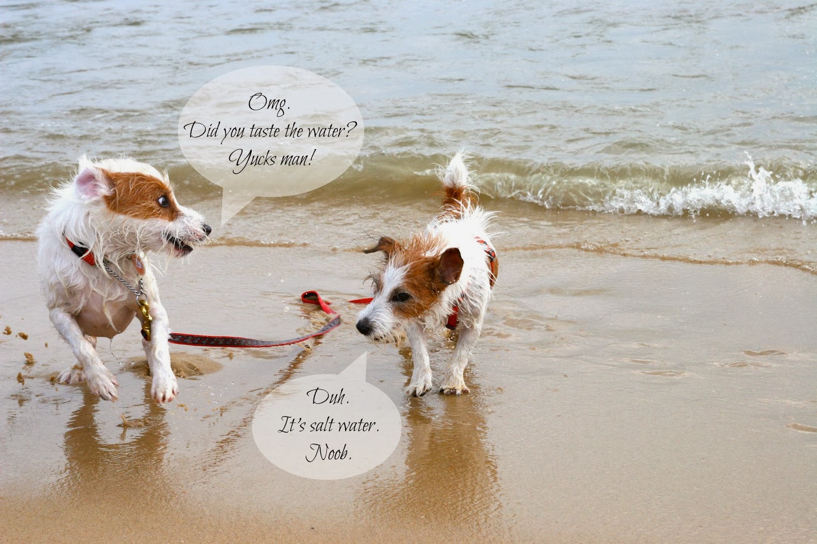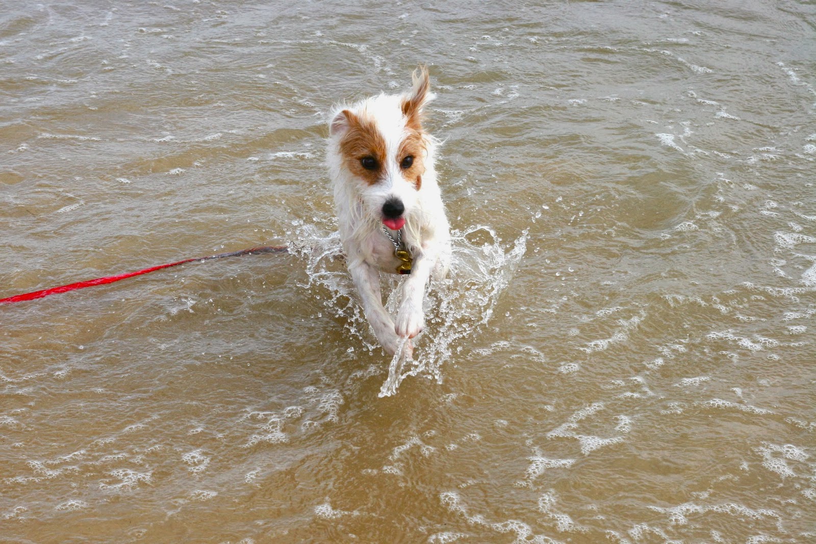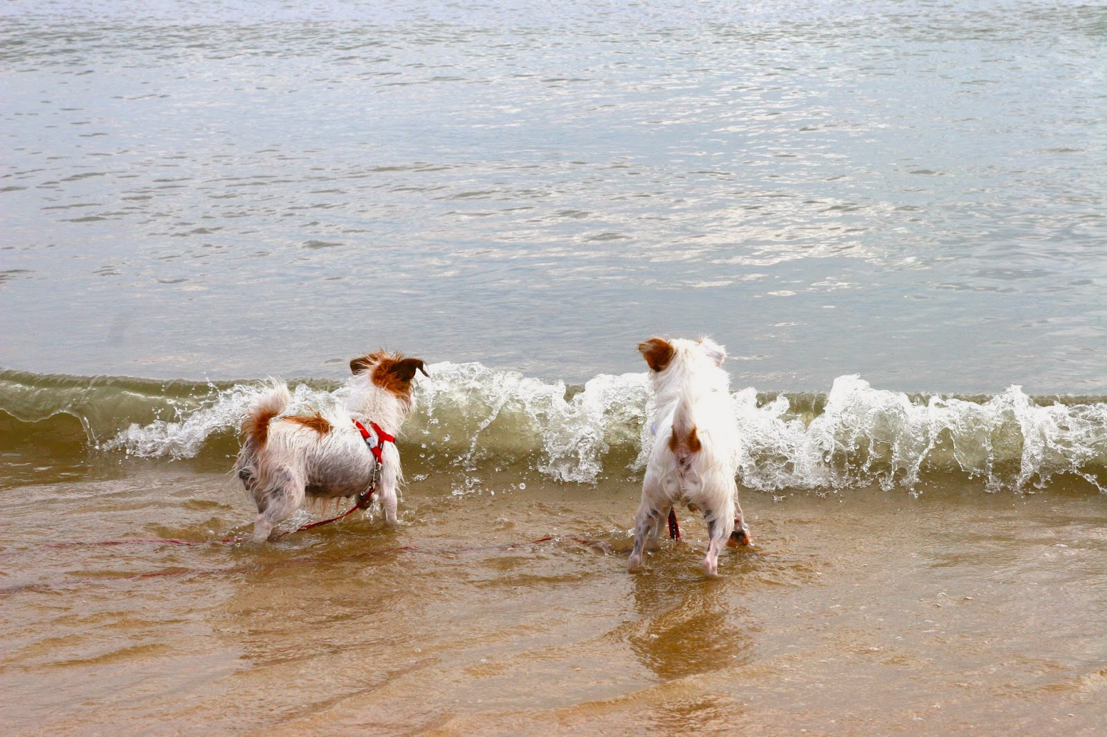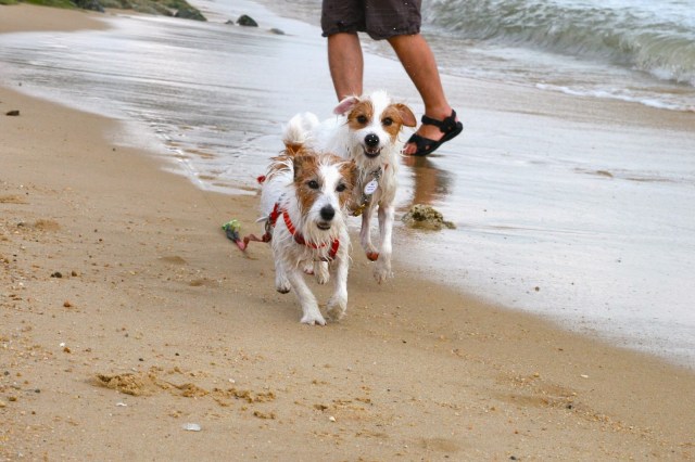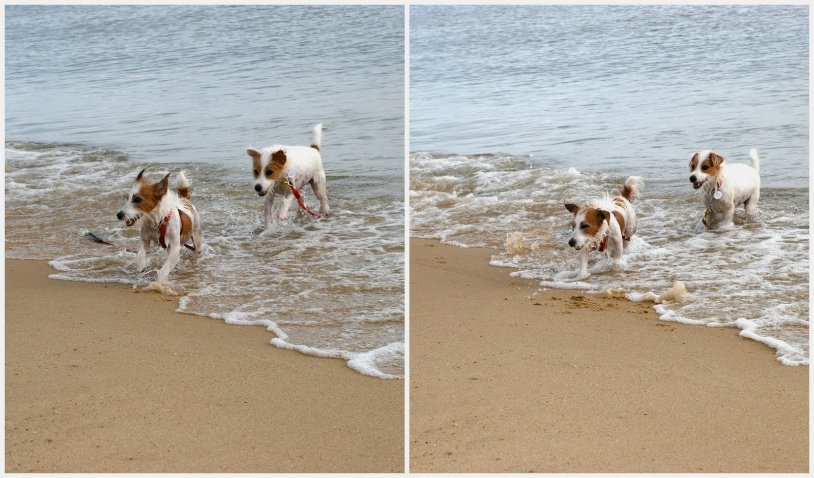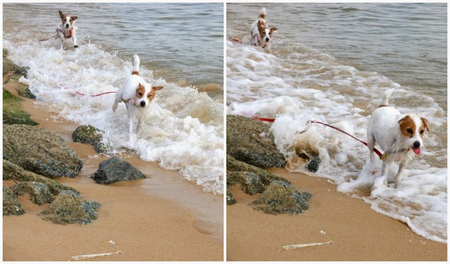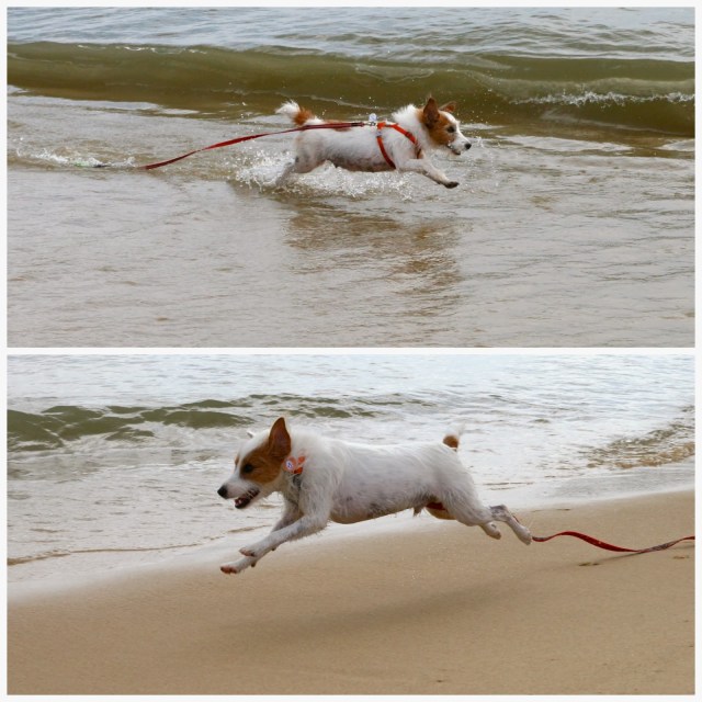The moment my parents dropped our leashes, off she went, crashing into waves (barking at them as well) and running along the shoreline!