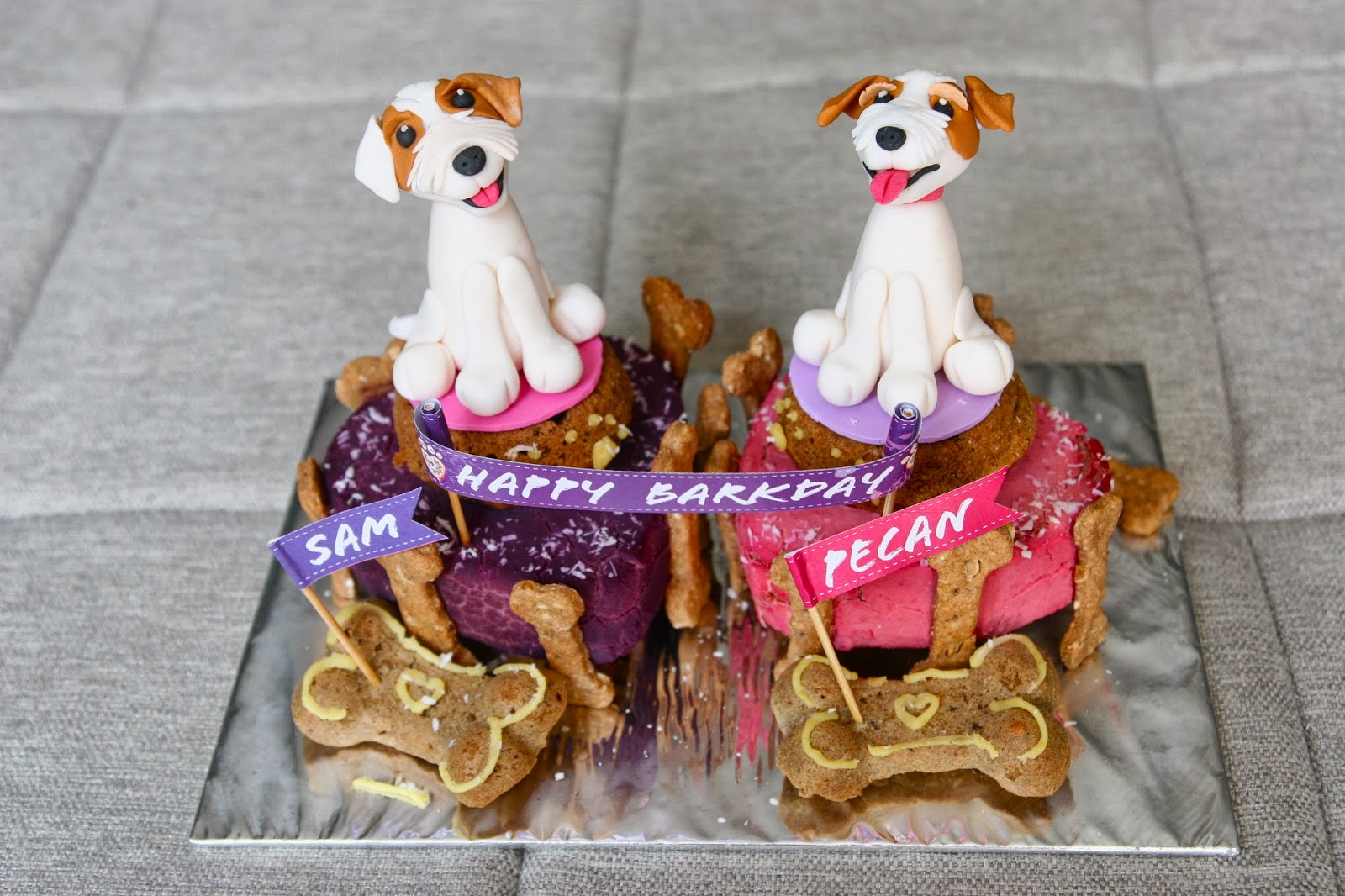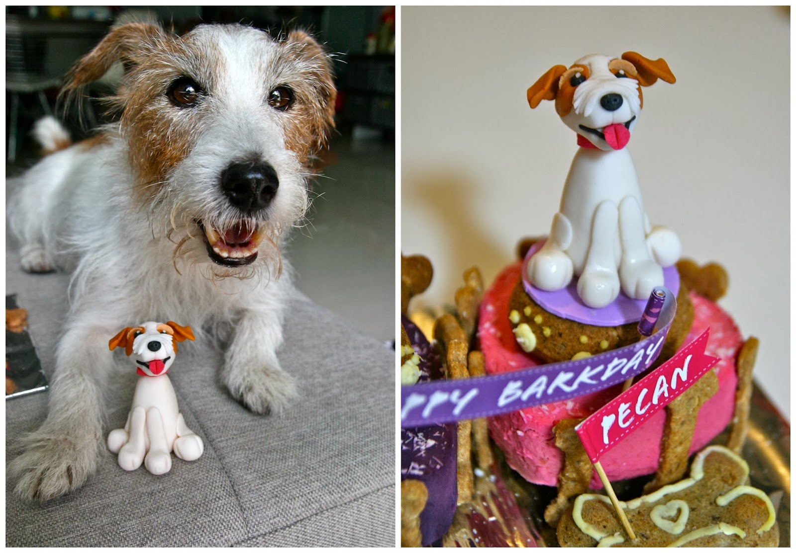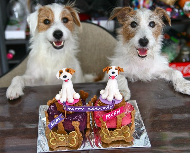 Mummy’s note: We don’t know when Pecan’s birthday is and decided that we might as well celebrate her birthday with the Fatty. The figurines are made of fondant and can be kept as keepsake as long as they are stored in dry and cool places. Clumsy me actually broke one of Pecan’s ears and thankfully it was nothing a blue-tab cannot solve. =P Anyway, Sam and Pecan loooved it and nothing makes me happier than two happy dogs!