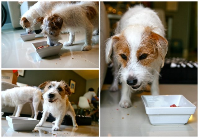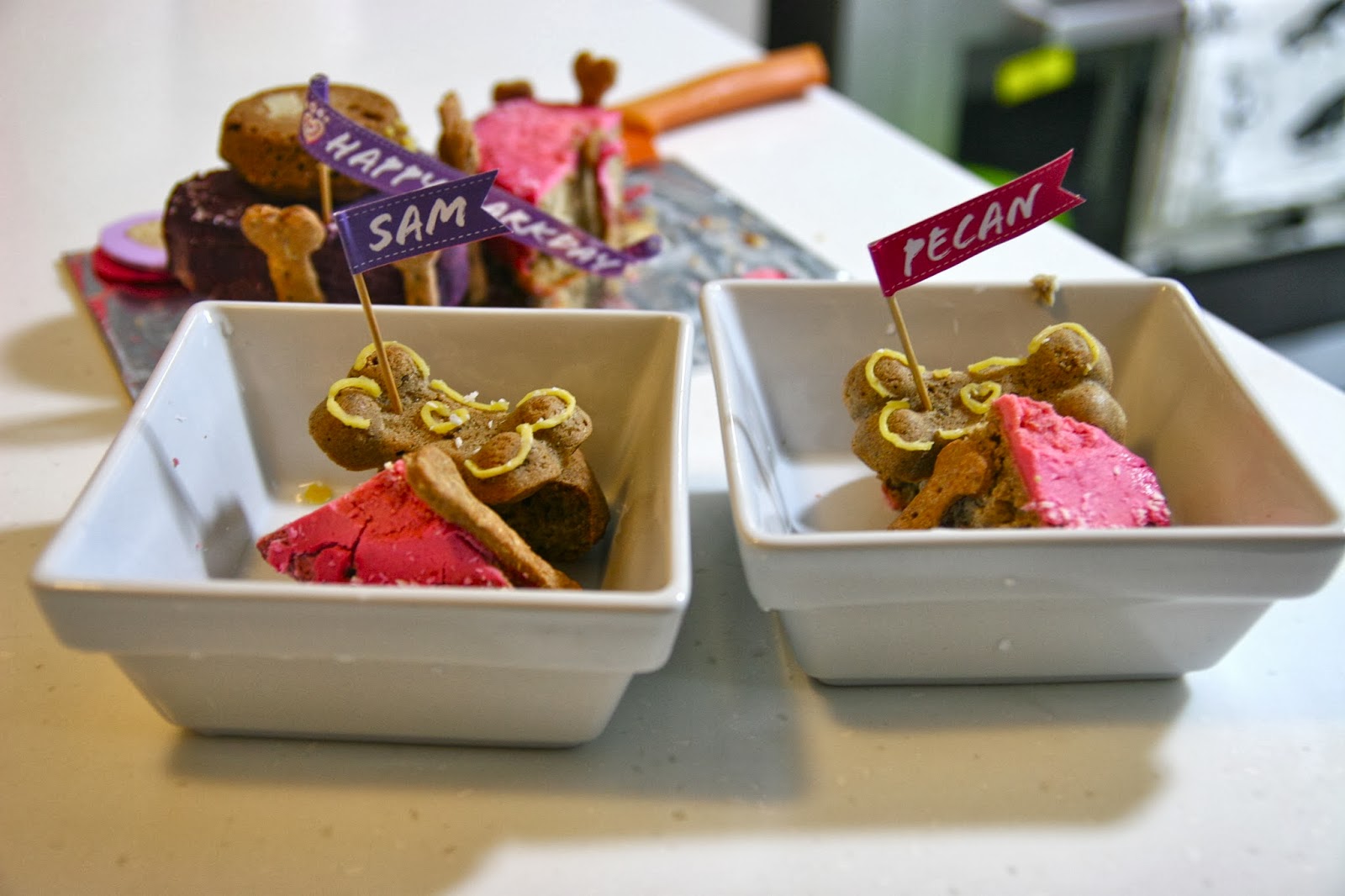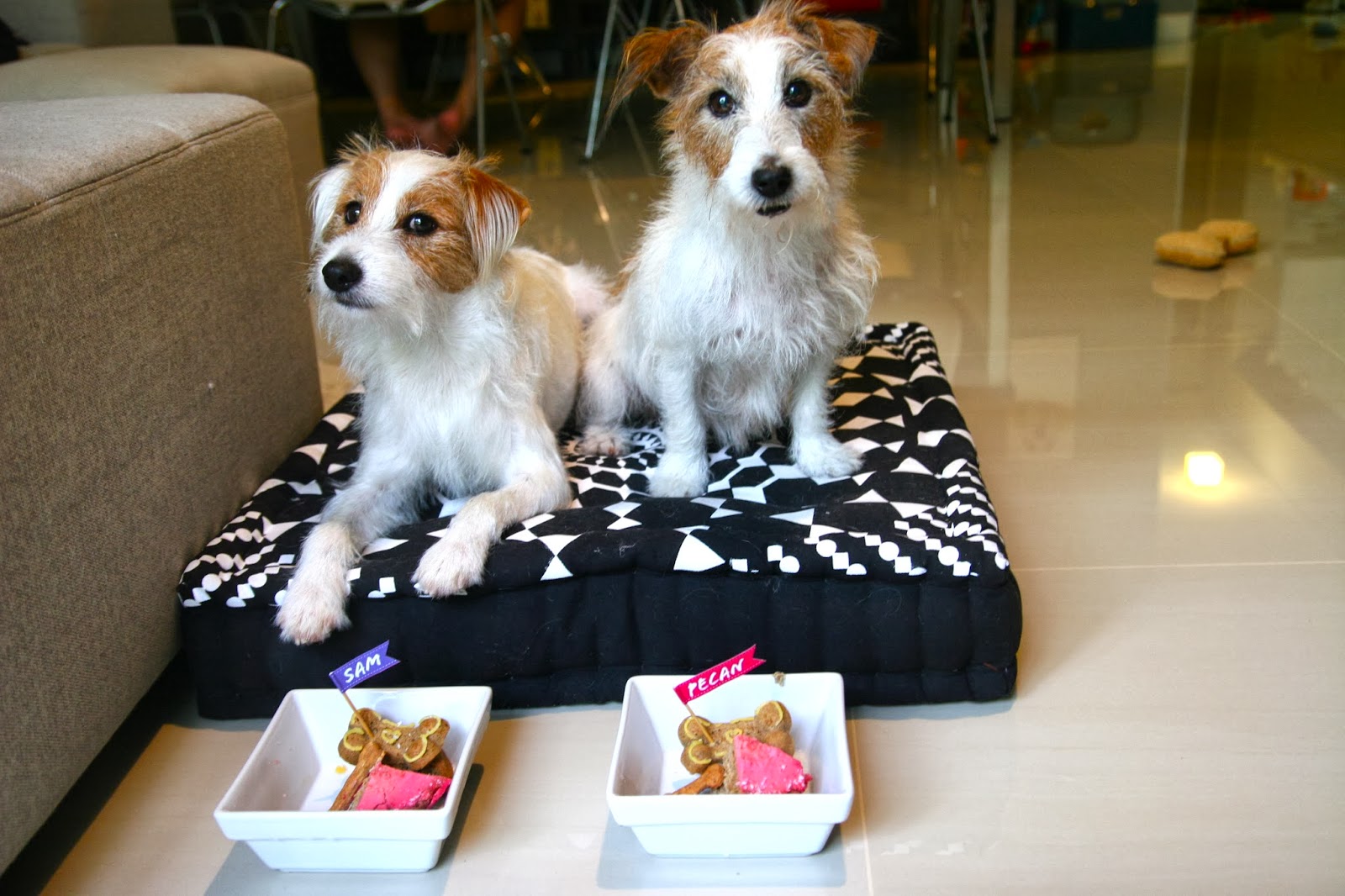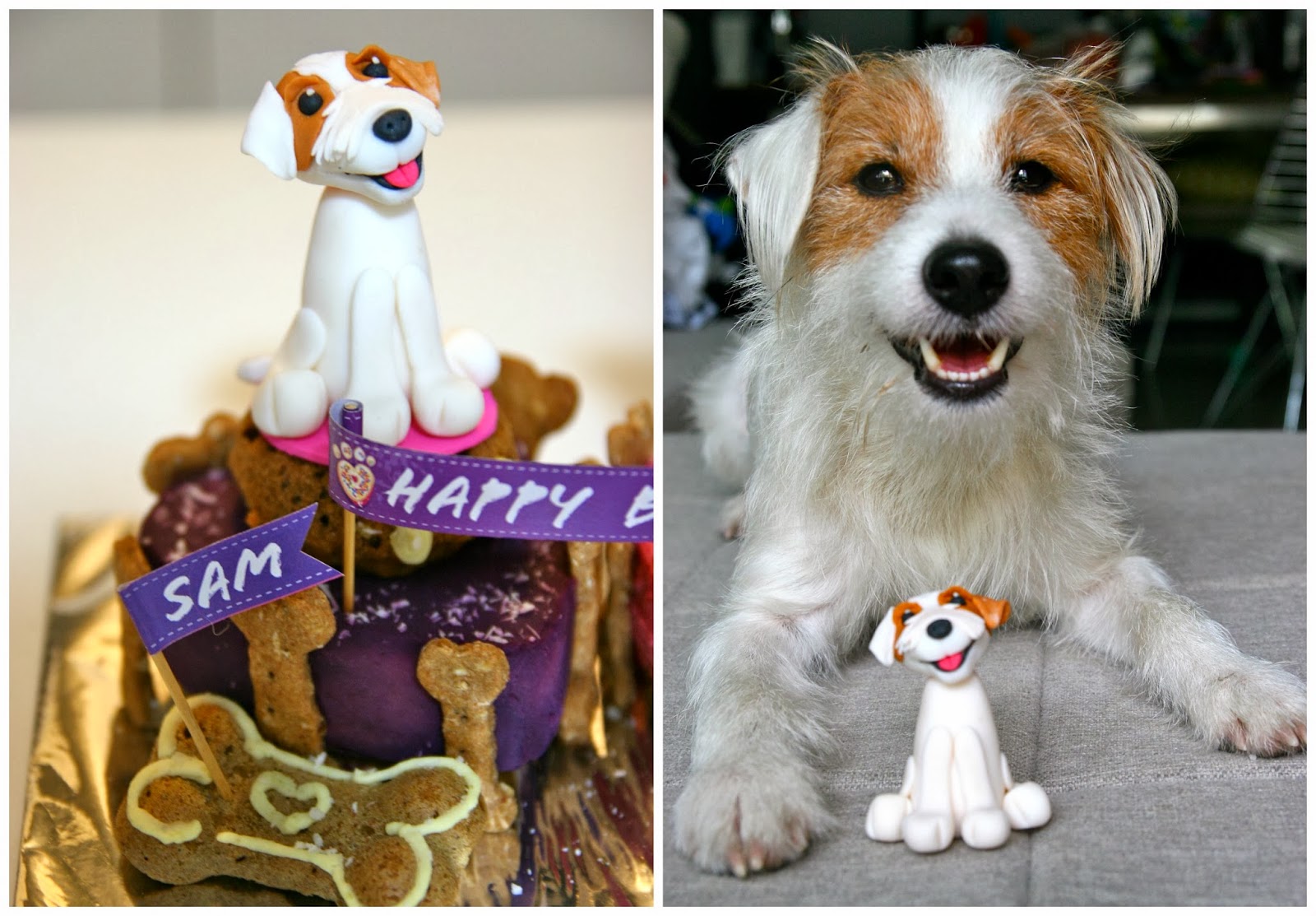 Mummy’s note: We don’t know when Pecan’s birthday is and decided that we might as well celebrate her birthday with the Fatty. The figurines are made of fondant and can be kept as keepsake as long as they are stored in dry and cool places. Clumsy me actually broke one of Pecan’s ears and thankfully it was nothing a blue-tab cannot solve. =P Anyway, Sam and Pecan loooved it and nothing makes me happier than two happy dogs!