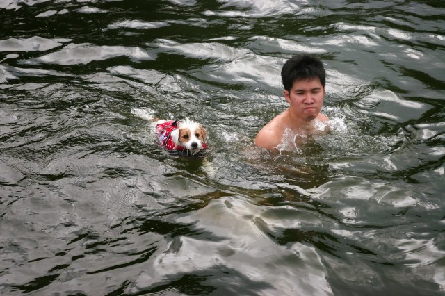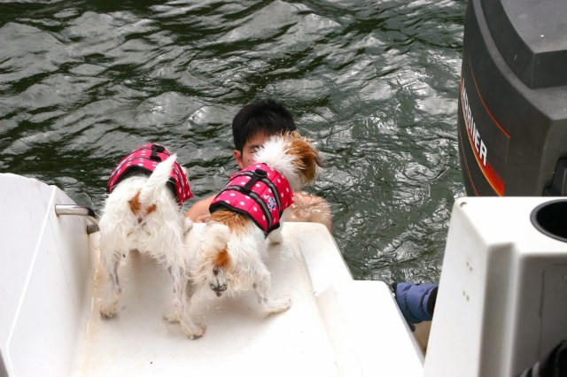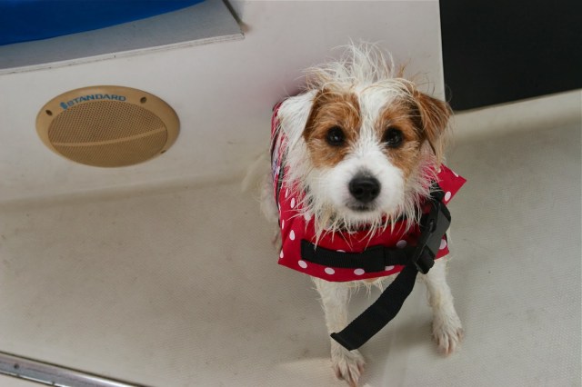 We were not very convinced that we would like it. At least we had life jackets on. (The jackets are from Pet Cruise).