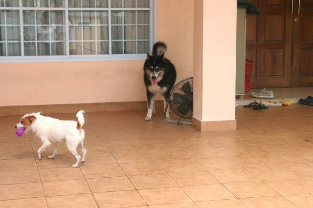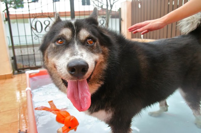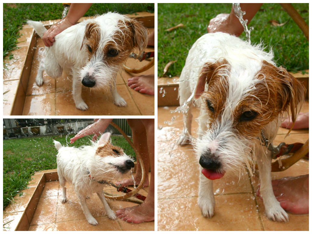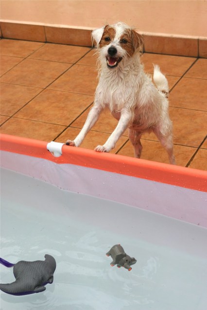 While Jager could effortlessly stroll in to the pool (Snowy had to be carried in as he’s a sweet old man with weak limbs), it was a little high for me and the grumpy ah ma, Pecan.