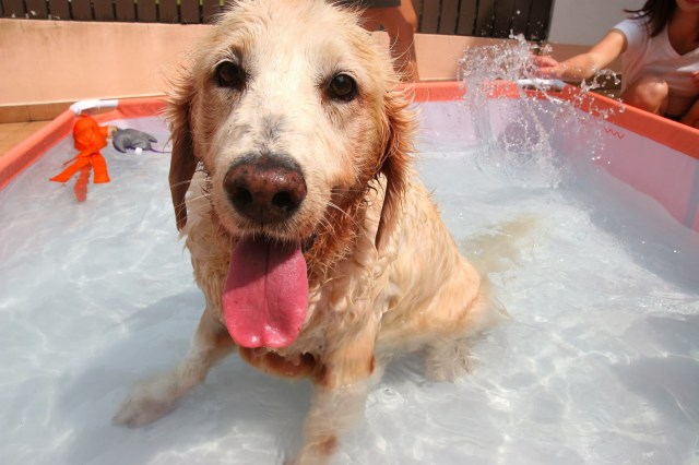 Although Snowy might be the one few rare Goldies that hate to swim in deep waters, he seemed to really like just cooling down in the pool!