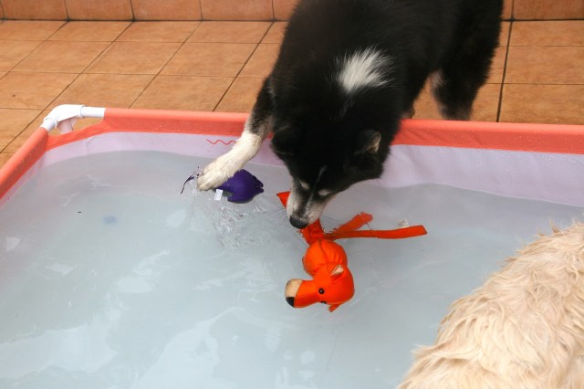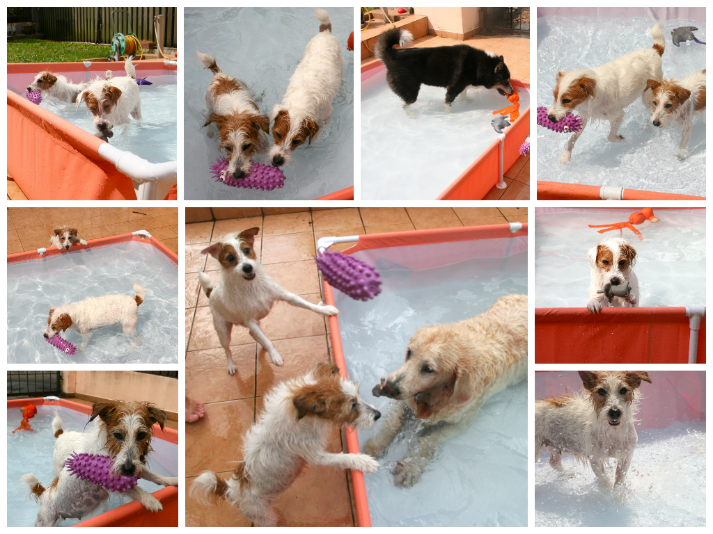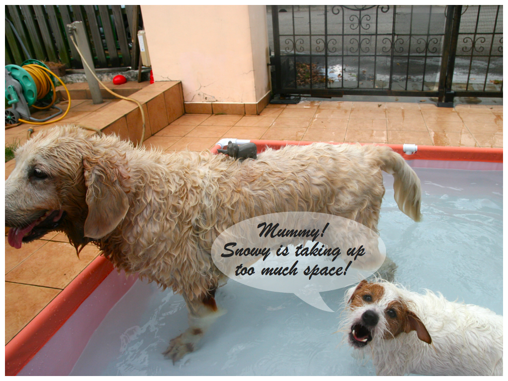 Auntie Charmaine had wanted to get one for her boys, Snowy the Golden Retriever and Jager the Alusky! So, Mummy, thinking that it was a brilliant idea, decided to share the cost. Plus, Auntie Charmaine has a lovely front garden that had ample space for the pool!