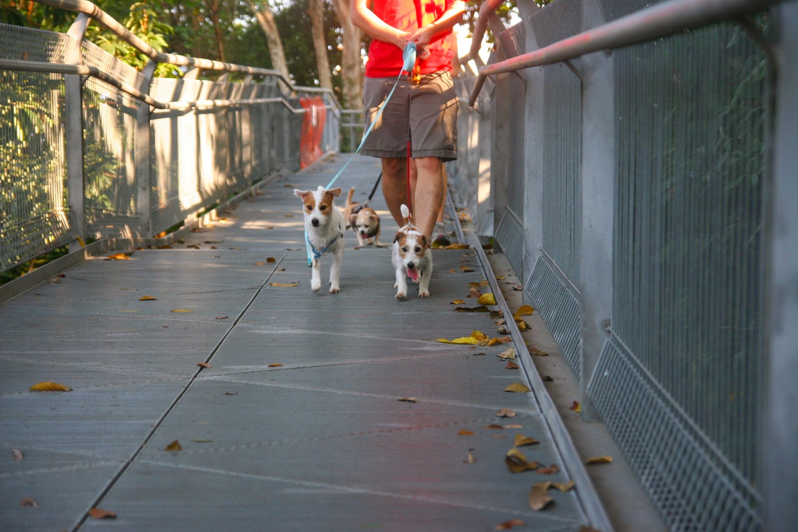 Hi Ashley! I would definitely recommend green corridor! It's one of our favourite places for off-leash fun. Try starting from the Rail Mall (You can also park there for free) and head towards Bukit Timah road. So you won't have to get lost. It's a straight stretch so it's pretty easy to spot an incoming dog. As Pecan ah ma isn't that great with all dogs (yet), Mummy will keep a lookout and leash her up before the other dog gets near. The only problem with Green Corridor is the numerous cyclists speeding pass that can get a tad annoying. As long as your boy's recall is strong, it really shouldn't be a problem! The walk to the Bukit Timah station and back takes about 30-40mins. If you're feeling adventurous and didn't drive, you can even try to walk all the way to Holland V and cab back from there! It will take about 2hours? Oh, mosquito patches for humans are a MUST and there's a chance of a muddy (but happy) dog at the end of the walk. As for Hort Park, technically we ain't allowed off leash, but there are some areas where Mummy would let us go. It's not as big as Green Corridor but you can try walking beyond Hort Park towards Kent Ridge Park. There're some trails over ground (the bridges) that's pretty fun to explore too. Unfortunately, it's laid using metal grills which some dogs may not be fond off. There were probably a few random dogs around, but not that many. Hence, you won't have to worry too much about it. (Hehehe, sorry for being so long winded!) Do let us know how it goes! =D