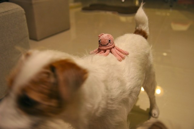 And yap, she’s a hand-knitted Octopus, made of toxic-free wool.