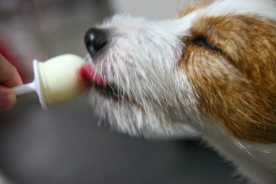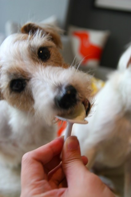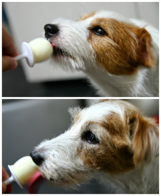 Ah ma waiting to pounce on her yoghurt pupsicle!