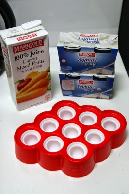 She also took out a packet of Mixed Carrot Juice and some low-fat yoghurt.
