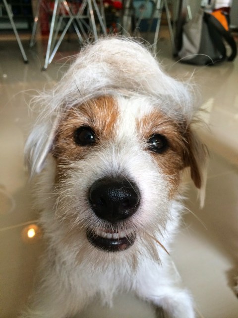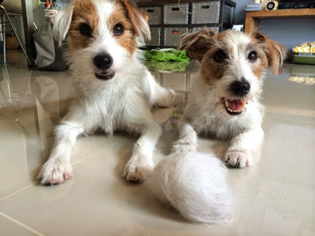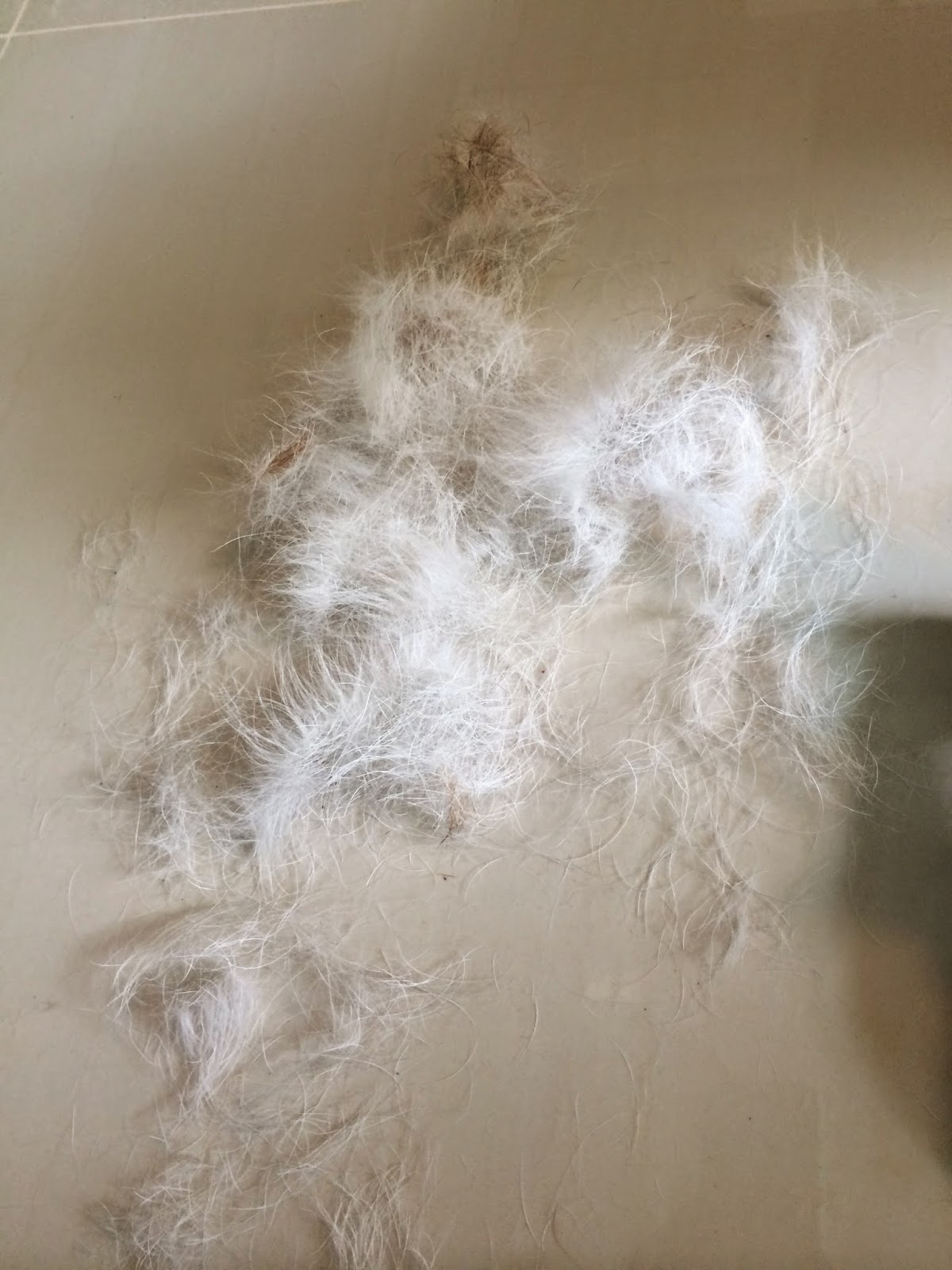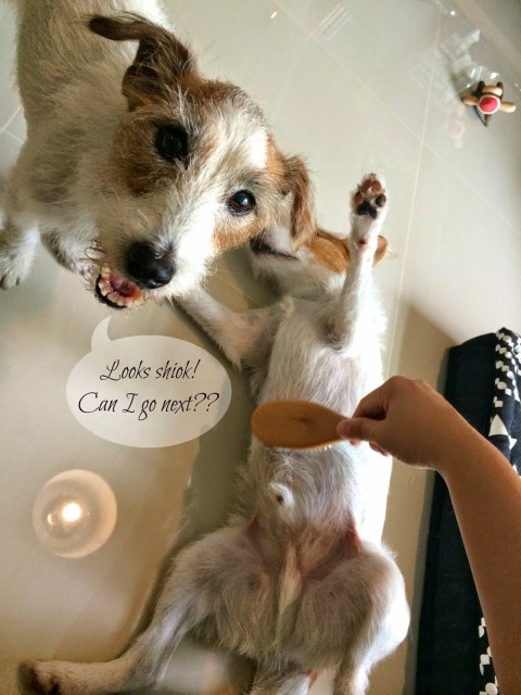 Using a pin brush, Mummy tries to neaten our coat and scratch any other stray hair left behind.