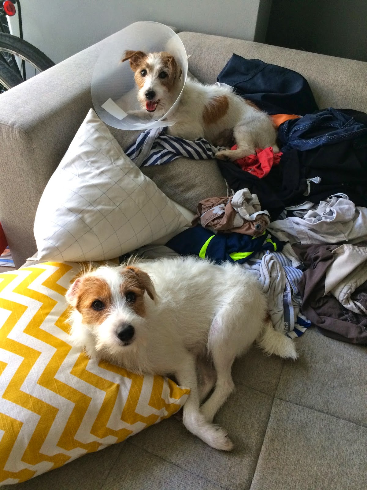Not only was she shaking a lot less, her appetite was pretty much back and she was back to gobbling down her food. That being said, her tail was pretty much down most of the day and she was walking like a slow coach on our walks.