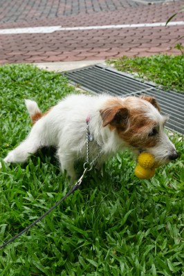 Yap. It was the toy that Mummy bought ah ma to cheer her up during her recovery. While Mummy knew Pecan loves squeaky toys, she certainly wasn’t expecting ah ma’s obsession to her new Ferplast toy.