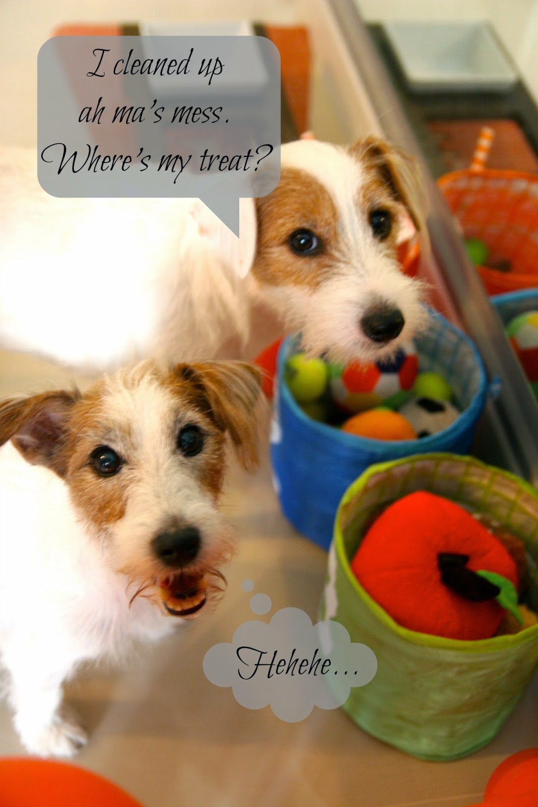 Just when Mummy was praising me for being such a clever dog, sly Pecan ah ma has to sneak in, steal the toy and ran away.