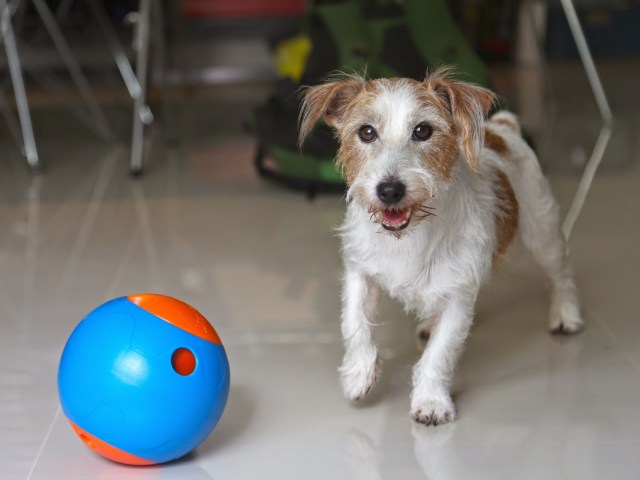 It is actually a self-reloading dog feeder as well, which means that it dispenses treats/kibbles on regular intervals.