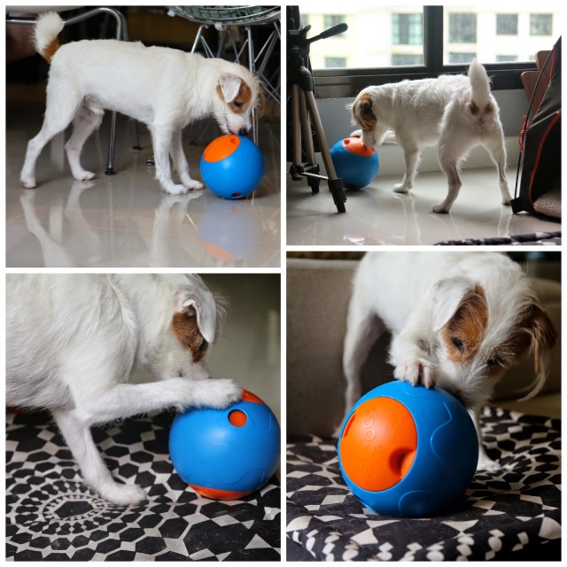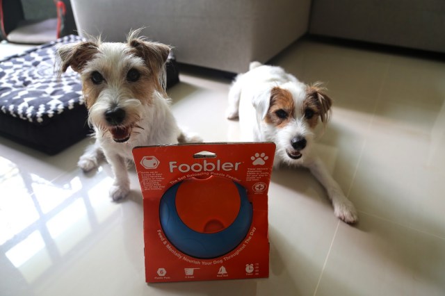 Mummy’s note: The Foobler is pretty impressive I must say. Initially, I thought that it was a tad big in size. But after watching Sam have a go at it, I was extremely thankfully that it couldn’t fit under the couch nor cupboard. How perfect for a lazy pet parent like me! Other than that, it was really easy to use. Although Sam did figure out how to get those treats out, he didn’t manage to associate the ring of the bell as a signal that more treats are available. I ended up having to spur him on. So, that’s certainly something we have to work on. The smart boy also figured out a way to hold the toy (by using his snout to bite on the hole the treats are dispensed from), so I guess a bit of supervision may be required in the beginning for destructive dogs. Putting the battery in was a little painful as we needed to loosen a screw just to do so. But I guess it isn’t too much of an issue as I don’t foresee the need to change the batts regularly. Overall, I found that it was pretty effective in keeping Sam entertained for a good deal of time. I loved how much he pants and how tired he gets after each interval! As for Pecan, well, that’s something we’ve to work on. Soon.