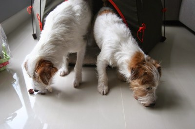 Doing our sniff test on our long awaited treats.
