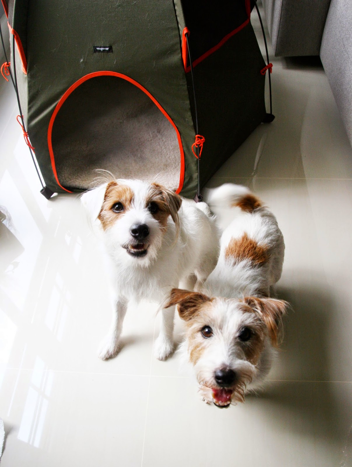 Anyway, fast forward not one but TWO freaking weekends and we were having a camping trip in our new Wagwear tent in our pathetic living room.