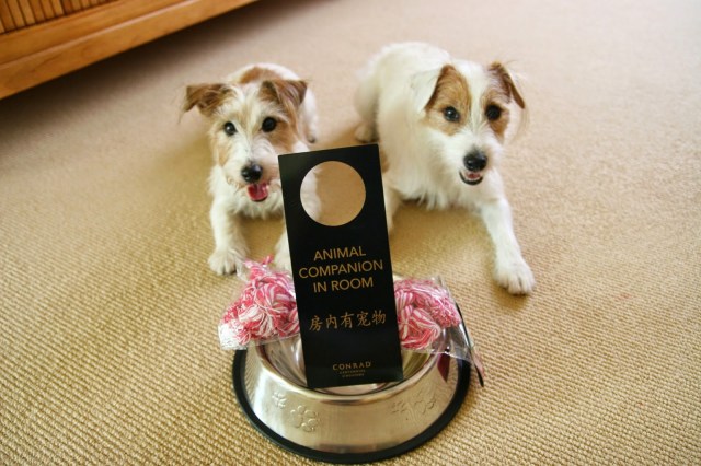 Conrad’s pet-friendly perks came in the form of a door sign, a chew toy and a good solid bowl for us.